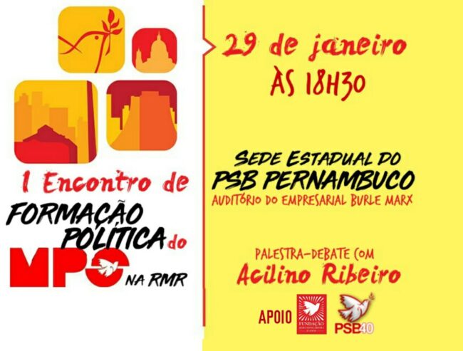O Movimento Popular Socialista (MPS) de Pernambuco promove nesta segunda-feira (29) o I Encontro de Formação Política do Recife, na…