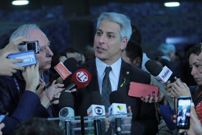 Os deputados socialistas Alessandro Molon (RJ), líder da oposição, e Rodrigo Agostinho (SP), presidente da Comissão do Meio Ambiente, se…