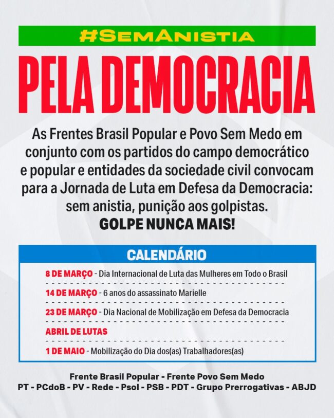 Organizações, entidades da sociedade civil e partidos políticos do campo democrático agendaram para o mês de março uma série de…