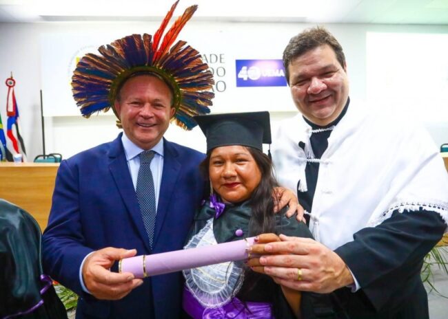 O governador Carlos Brandão (PSB) participou da cerimônia de formatura da primeira turma de professores indígenas da Universidade Federal do…