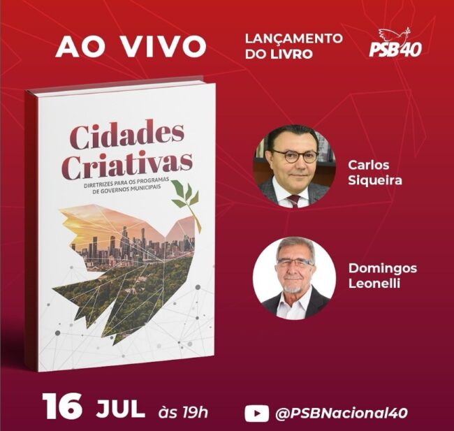 O presidente nacional do PSB, Carlos Siqueira, participa nesta terça-feira (16), às 19h, do lançamento on-line do livro “Cidades Criativas…